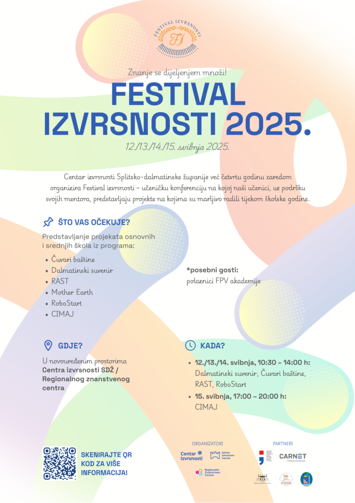 Četvrtu godinu za redom CI SDŽ organizira Festival izvrsnosti – tradicionalnu učeničku konferenciju na kojoj će polaznici koji sudjeluju u izvannastavnim programima CI SDŽ sa svojim mentorima imati priliku jedni drugima, svojim roditeljima, rodbini, prijateljima i nastavnicima te široj javnosti predstaviti projekte na kojima su radili u ovoj školskoj godini.